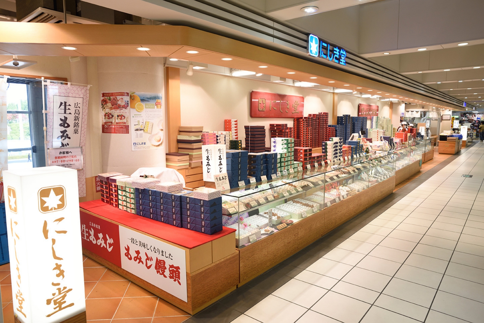 Hiroshima, Hikarimachi Main StoreHead Office and Factory 1-13-23 Hikarimachi, Higashi-ku, hiroshima city, hiroshima prefecture Hiroshima Station Ekie 1 and 2 Hiroshima Station EKIE 2F, Minami-ku, Hiroshima City, Hiroshima Prefecture(Ekie 1 Momiji-manju demonstration machine installed) Hiroshima Airport Store 2F Hiroshima Airport, Hongo-cho, Mihara City, Hiroshima Prefecture(Momiji-manju demonstration machine installed) Miyajima Store 1165-2 Miyajima-cho, Hatsukaichi City, Hiroshima Prefecture Take a Virtual Tour (Japanese) Peace Boulevard Tanaka-machi Store 5-11 Tanaka-cho, Naka-ku, Hiroshima City, Hiroshima Prefecture Hiroshima Bus Center 3F Hiroshima Bus Center, Motomachi, Naka-ku, Hiroshima City, Hiroshima Fukuyama Station Sansute Store 1F Fukuyama Station Sansute Fukuyama, Minomaru-cho, Fukuyama City, Hiroshima Prefecture Gion Shindo Nakasuji Store 1-9-6 Nakasuji, Asaminami-ku, Hiroshima City, Hiroshima Prefecture Fukuyama Minami-Honjo StoreFukuyama Plant 1-4-13 Minami Honjo, Fukuyama City, Hiroshima Prefecture Fukuyama Minami-zoao Store 2-27-22 Minami-Zao-cho, Fukuyama City, Hiroshima Prefecture(Momiji-manju demonstration machine installed)
